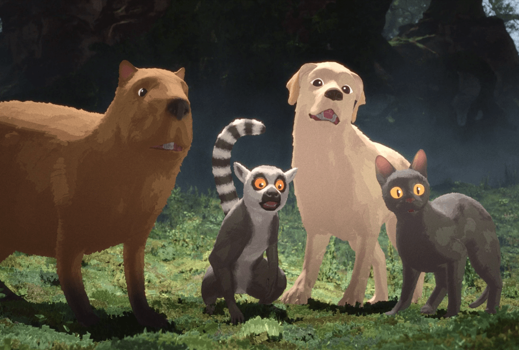 Flow takes us on a wild boat ride with an unlikely crew of animals. A catastrophic flood hits a world that is filled with wildlife, but appears to be post-human. Plenty of manmade structures, but no people. Cat is our main character, who scrambles onto a passing boat just as the waters rise above the chance of any foothold – even for a cat.
